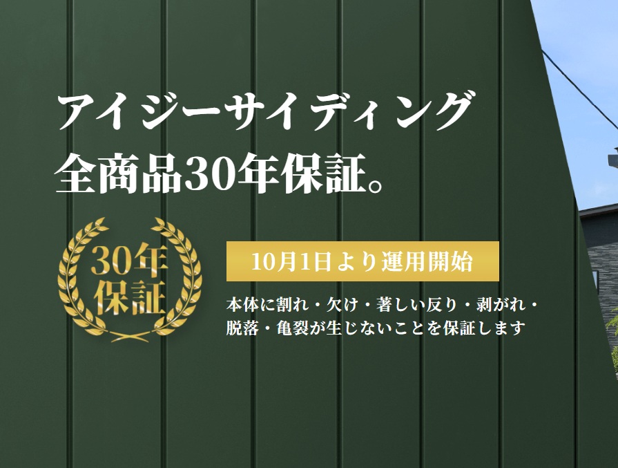 アイジー工業株式会社(IG KOGYO Co., Ltd.) 10月1日より金属サイディング 全商品30年保証の運用を開始しました。 詳細は下記のリンクにてご確認ください。 アイジーサイディング全商品30年保証。|アイジー工業株式会社